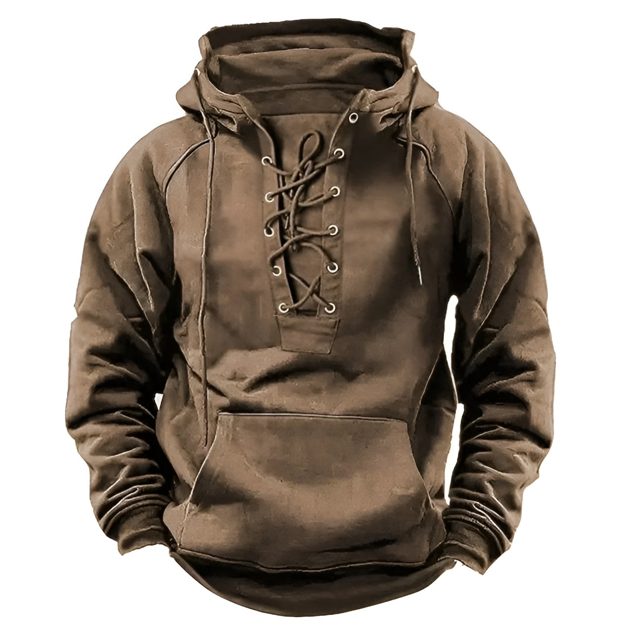 Il classico laccio frontale dona un look vintage e maschile, unico e senza tempo. Una felpa che esprime sicurezza e personalità.